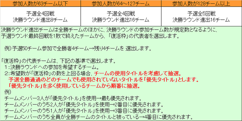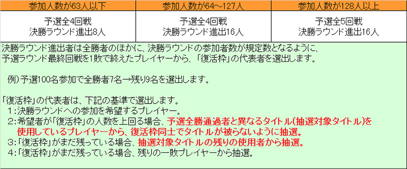 | 上位賞 | 優勝:表彰状&ウィナープレイマット&デッキレシピ掲載 |