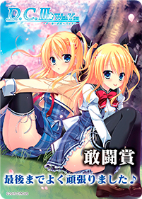 優勝:タイトル特製記念盾&デッキレシピ掲載 上位:最終戦または4回戦まで参加した方には、各タイトル特製のカード型ミニ賞状をプレゼント! 『ダ・カーポ&Dal Segno』 ![]() 『ラブライブ!サンシャイン!!』 ![]() 『ペルソナ』 ![]() 『ご注文はうさぎですか??』 ![]() 『Re:ゼロから始める異世界生活』 ![]() 『Rewrite』 ![]() 『ソードアート・オンライン』 ![]() 『この素晴らしい世界に祝福を!』 ![]() 『チェインクロニクル ~ヘクセイタスの閃~』 ![]() 『BanG Dream!』 ![]() |